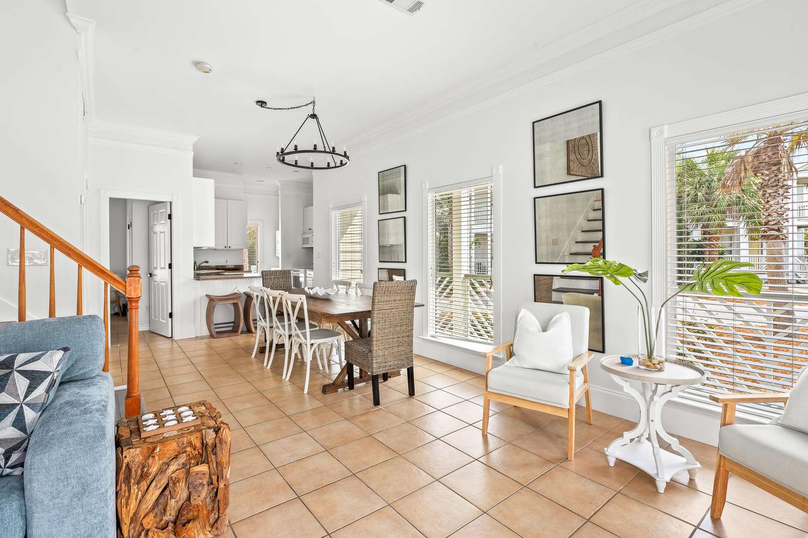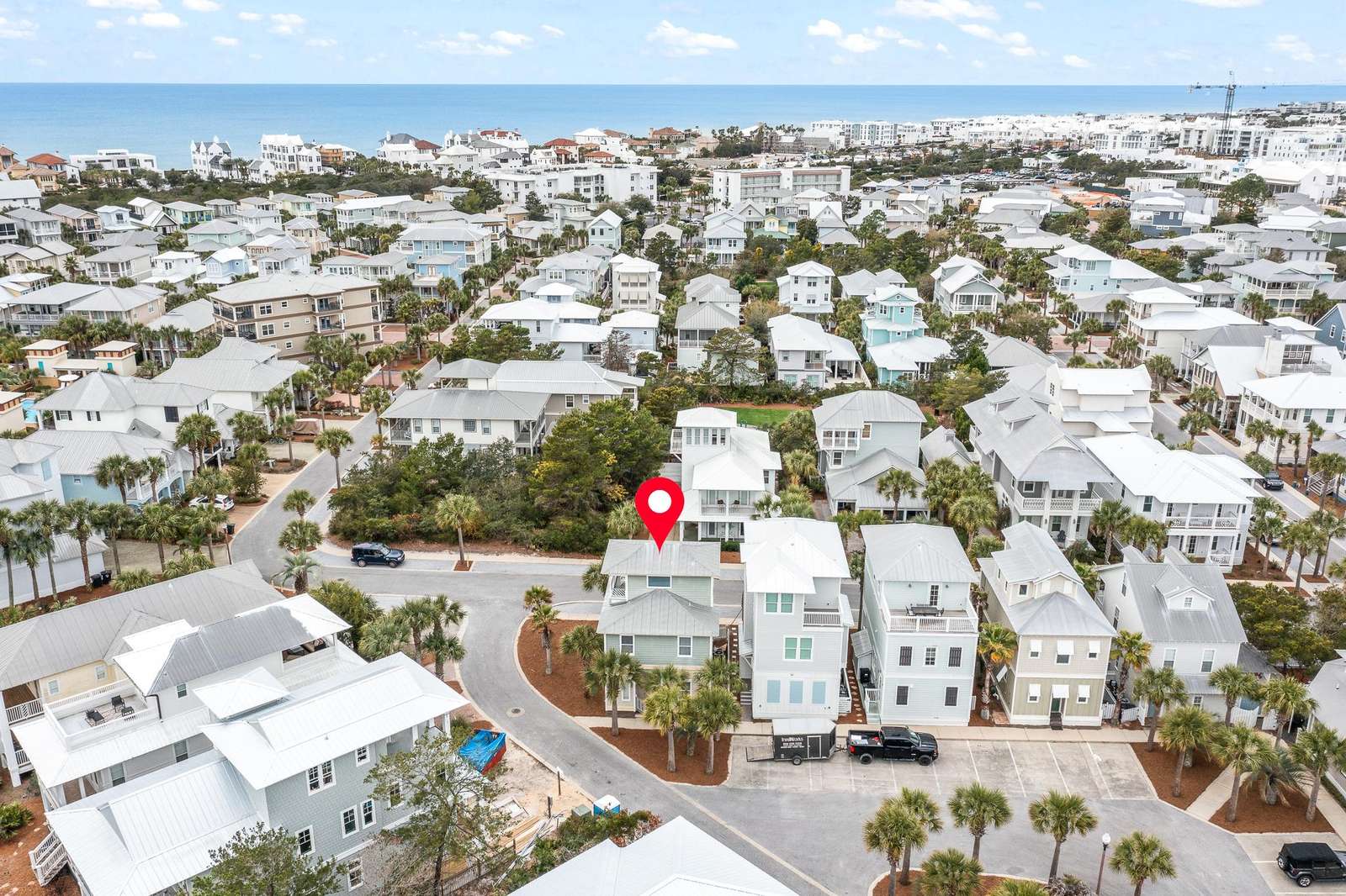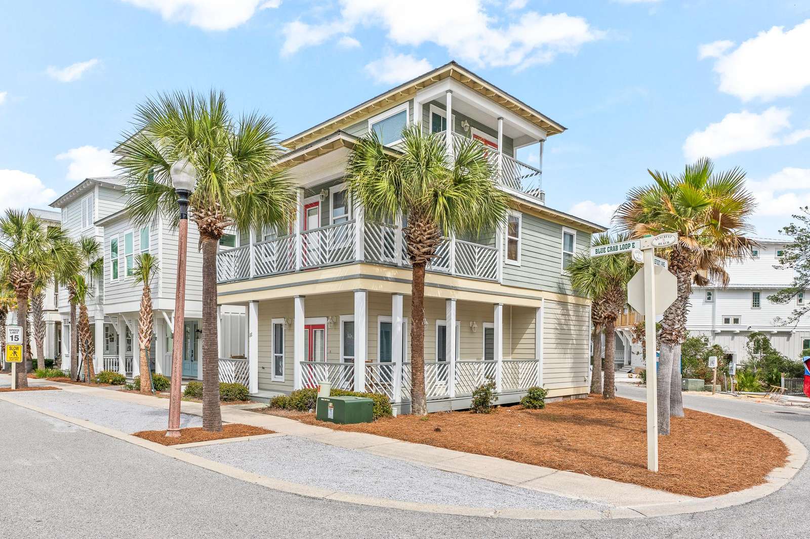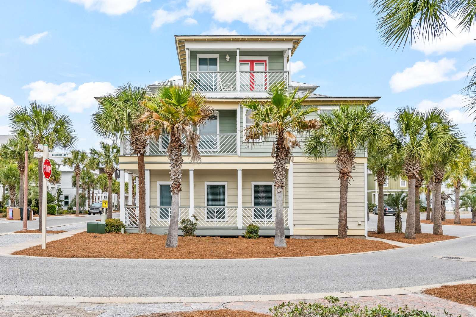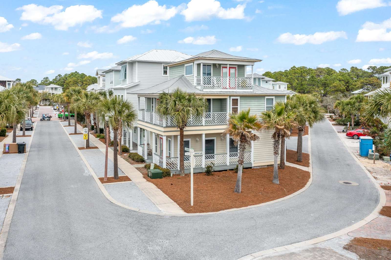 Situated in a prime corner location, this home is an idyllic setting for a beach getaway. This home exudes Florida elegance, communicated through beautiful finishes, superb craftsmanship and decadent amenities. Moving through the home's first level includes a sun-splashed living room, a nice kitchen with gorgeous countertops, white appliances, plus adjoining dining area. You will find one bedroom plus a bathroom and washer/dryer conveniently located. The second floor has an expansive master suite with an ensuite bathroom, two additional bedrooms, and porches galore. Move on up to the third floor where you will find the final bonus area/bedroom with a full bathroom and gorgeous views from the oversized covered balcony.