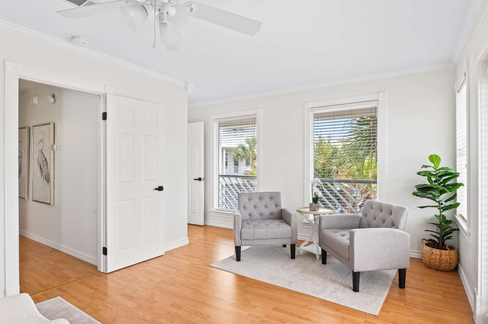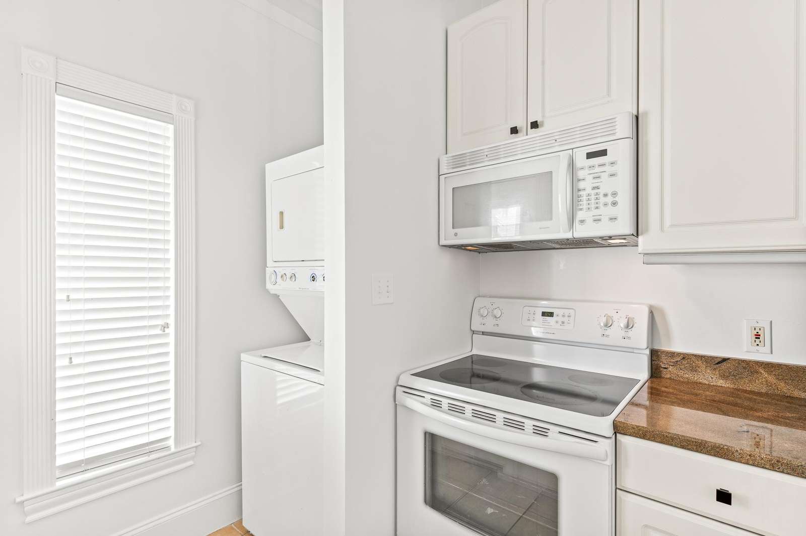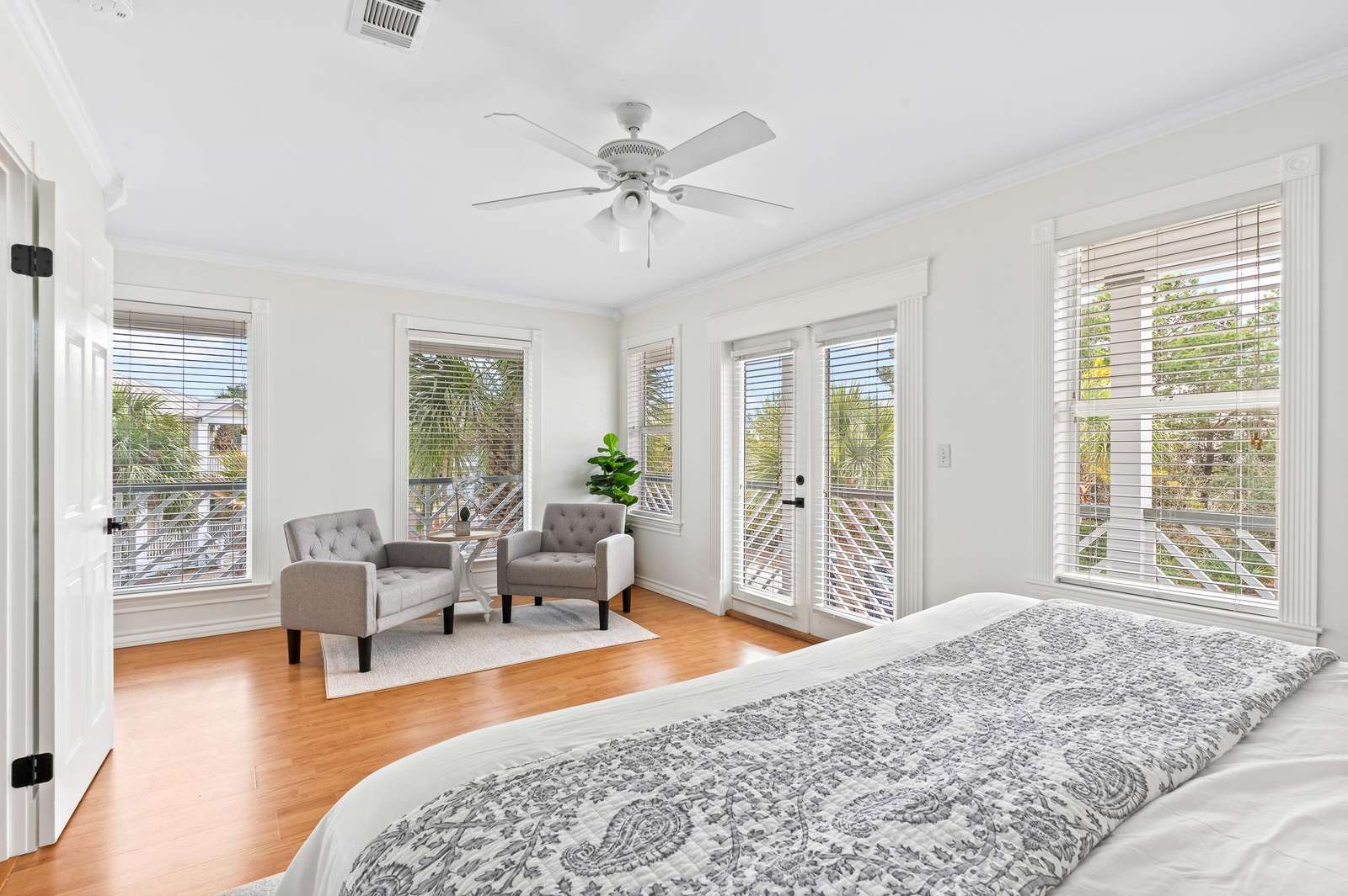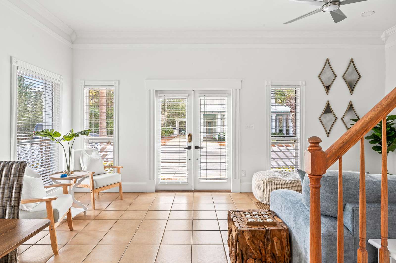 Situated in a prime corner location, this home is an idyllic setting for a beach getaway. This home exudes Florida elegance, communicated through beautiful finishes, superb craftsmanship and decadent amenities. Moving through the home's first level includes a sun-splashed living room, a nice kitchen with gorgeous countertops, white appliances, plus adjoining dining area. You will find one bedroom plus a bathroom and washer/dryer conveniently located. The second floor has an expansive master suite with an ensuite bathroom, two additional bedrooms, and porches galore. Move on up to the third floor where you will find the final bonus area/bedroom with a full bathroom and gorgeous views from the oversized covered balcony.