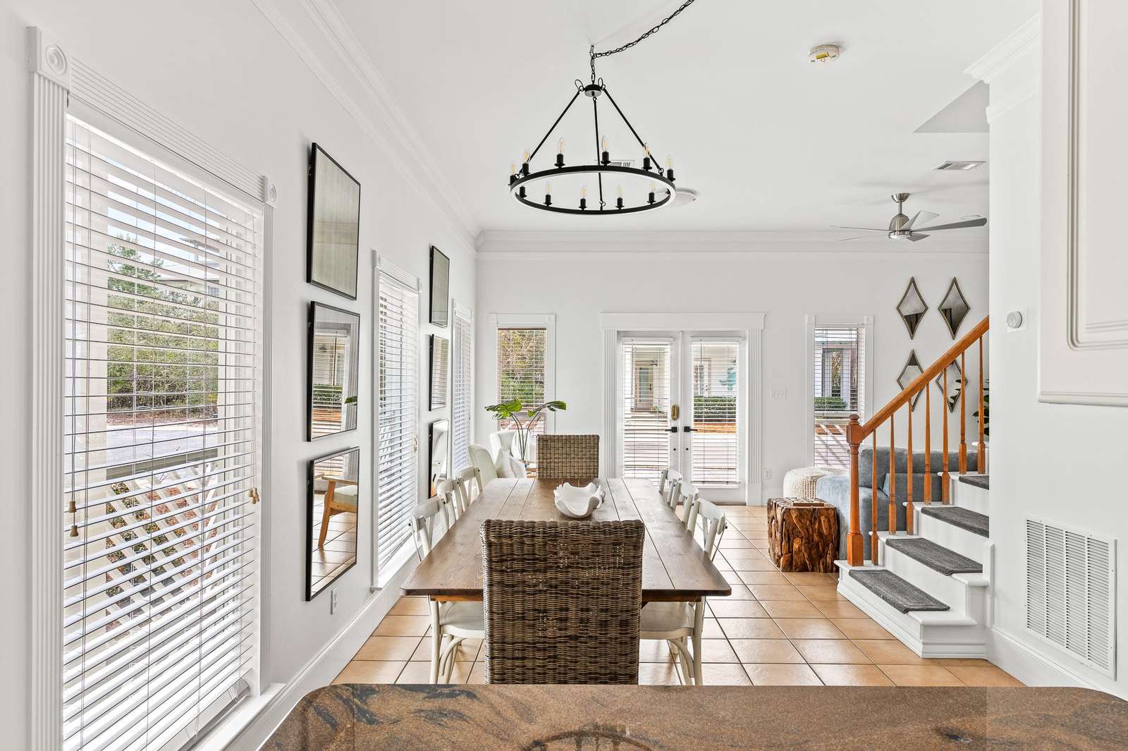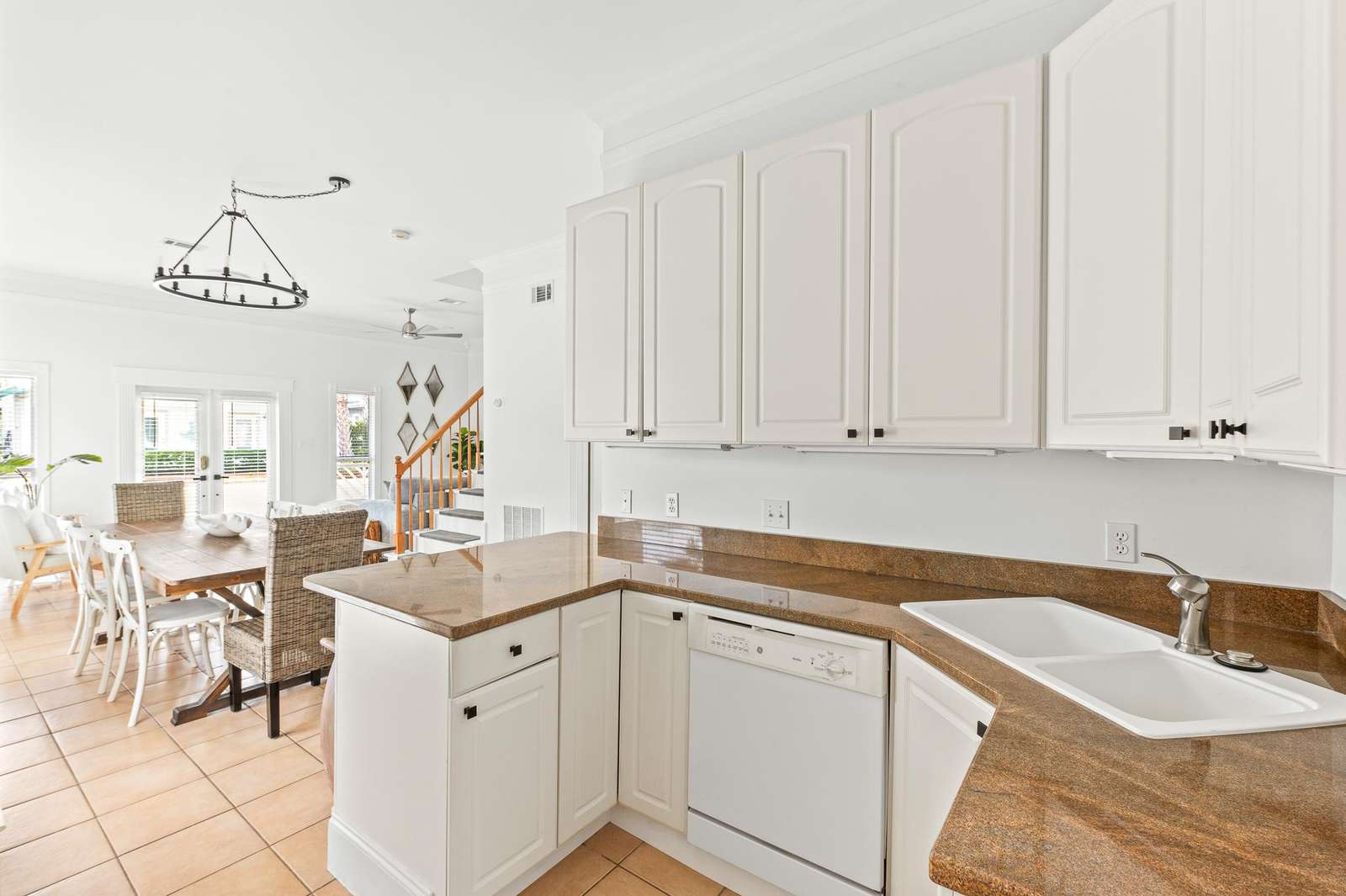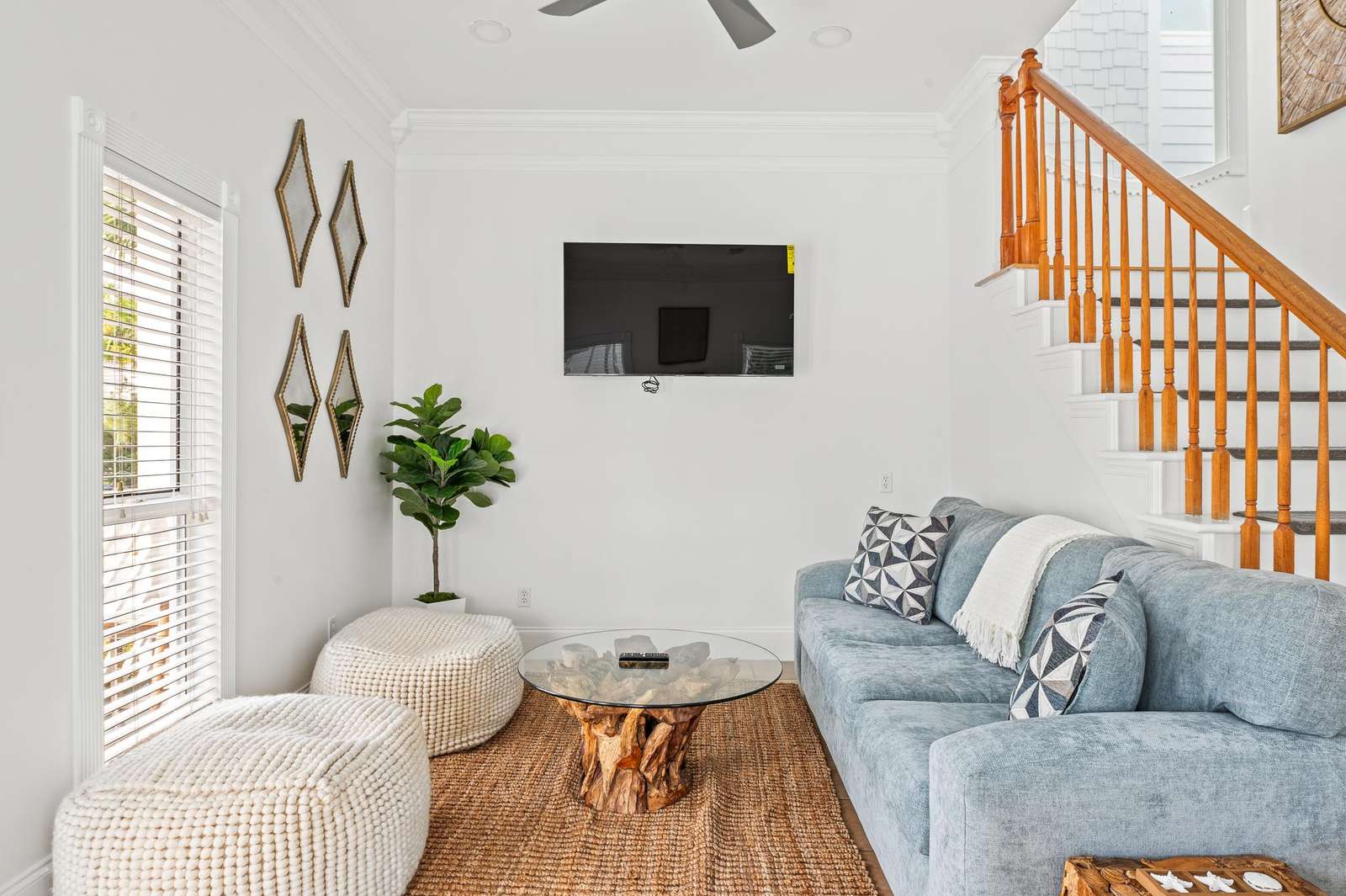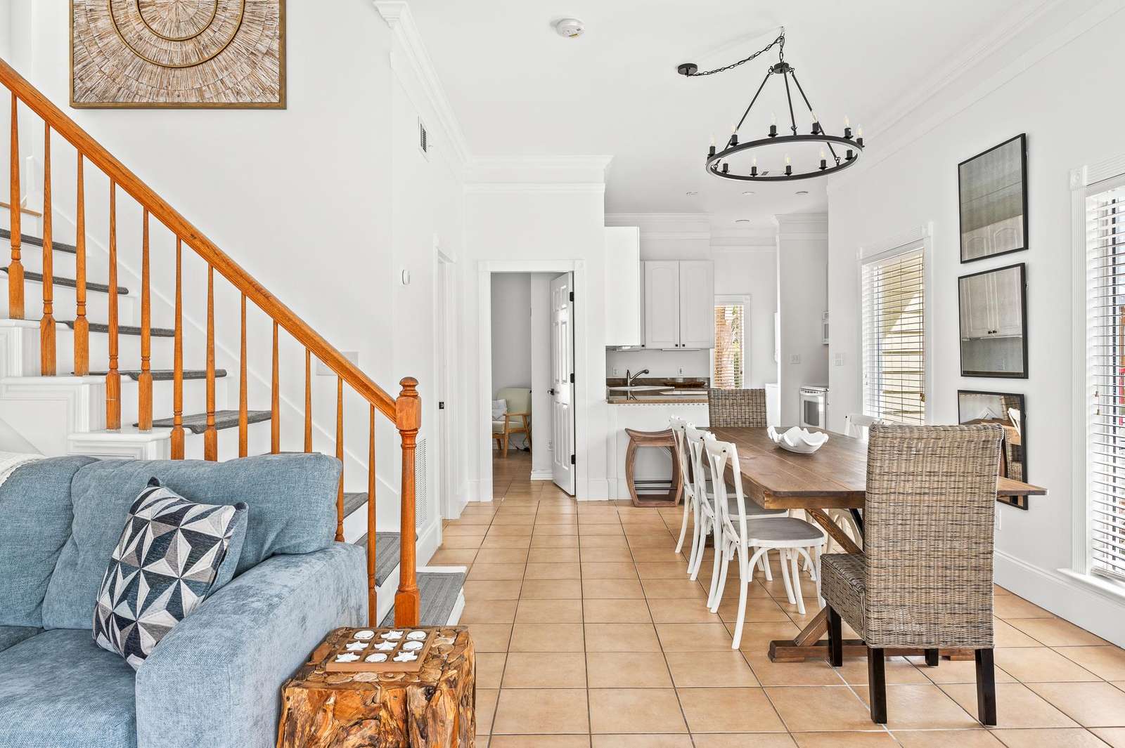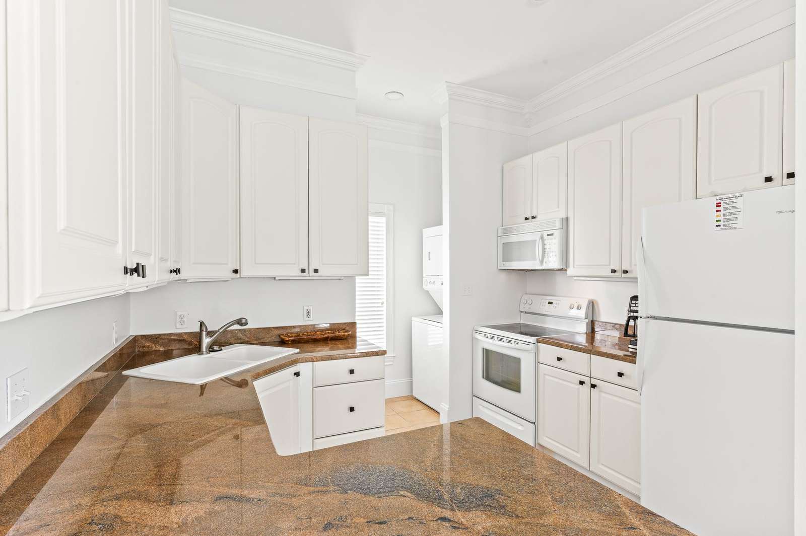 Situated in a prime corner location, this home is an idyllic setting for a beach getaway. This home exudes Florida elegance, communicated through beautiful finishes, superb craftsmanship and decadent amenities. Moving through the home's first level includes a sun-splashed living room, a nice kitchen with gorgeous countertops, white appliances, plus adjoining dining area. You will find one bedroom plus a bathroom and washer/dryer conveniently located. The second floor has an expansive master suite with an ensuite bathroom, two additional bedrooms, and porches galore. Move on up to the third floor where you will find the final bonus area/bedroom with a full bathroom and gorgeous views from the oversized covered balcony.